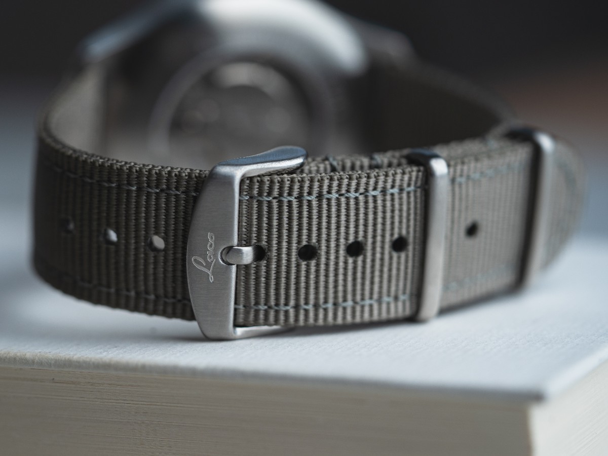 - Graues Nylonband, Edelstahlschließe mit Laco Logo