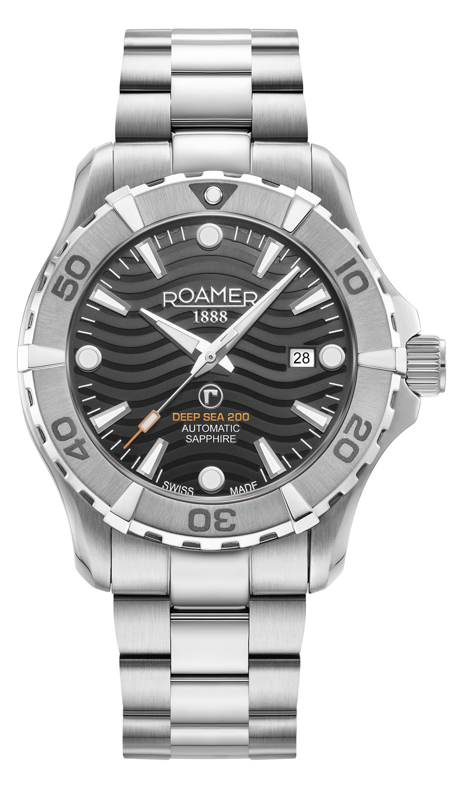 Ein kratzfestes Saphirglas schützt das markante schwarze Zifferblatt mit Wellenmuster, das der Uhr eine edle maritime Note verleiht. Die Roamer Deep Sea Automatic ist damit eine stilvolle, zuverlässige und sportliche Herrenuhr für jeden Tag.